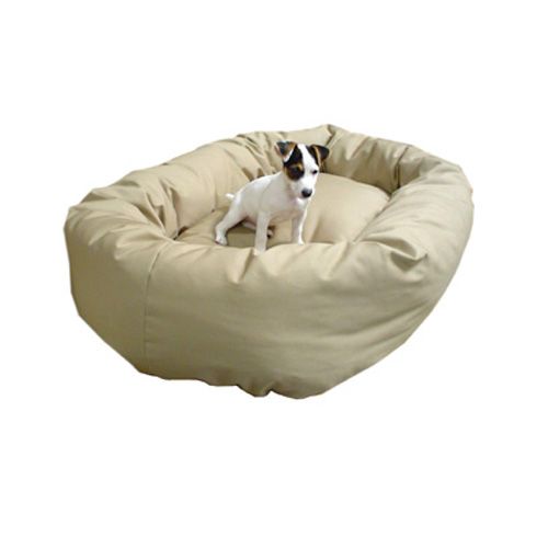 Majestic Pet Denier Bagel Dog Bed Small Khaki A brand new small 24 bagel style pet dog bed from majestic pet products. You will not find a more luxurious pet bed especially when your puppy finds himself surrounded by a plush bolster thats made for leaning against for those long naps. Its made of the finest materials available: a base of heavy duty water proof 300/600 Denier the Bolster and Cushion of a durable 7oz. poly/cotton Twill and stuffed with a premium high loft polyester fiber fil. Fully machine washable; just place the entire bed in your washer and dryer on low heat tumble dry low. Small recommended for dogs 10 to 25 lbs. Outside Dimensions: 24 x 22. Bolster: 9. Height Cushion: 6. Length: 18. Width: 16. Color: Khaki.